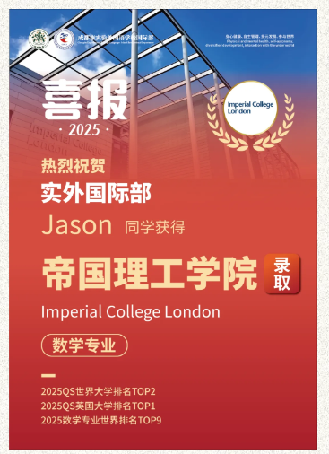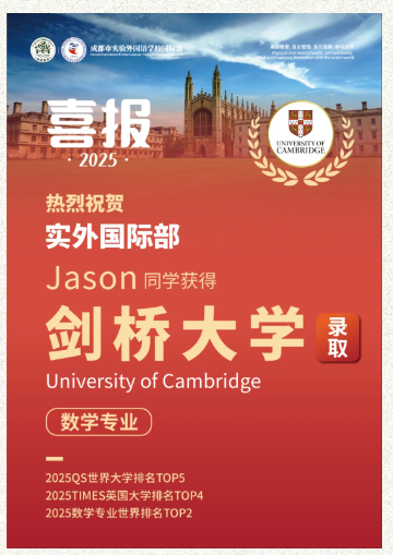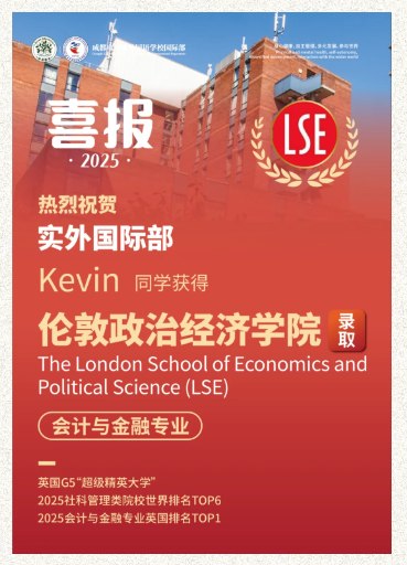在G5大学的申请中,收获了成都地区首封剑桥大学数学专业录取,开启了G5放榜热潮。在全球录取率均低于全球10%的高难度录取中,斩获伦敦政治经济学院王牌专业,会计与金融专业录取;帝国理工学院,世界排名第9的数学专业录取。