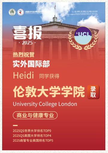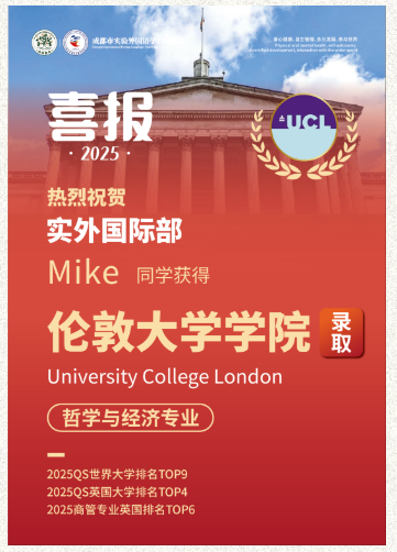 作为G5院校中的“高人气”院校,伦敦大学学院的全球申请人数逐年递增,在激烈的竞争之下,实外国际部目前已有6名学子脱颖而出,收获了6封伦敦大学学院录取,其中包含其申请难度较高的经济学、机械工程、数学等专业的录取。
