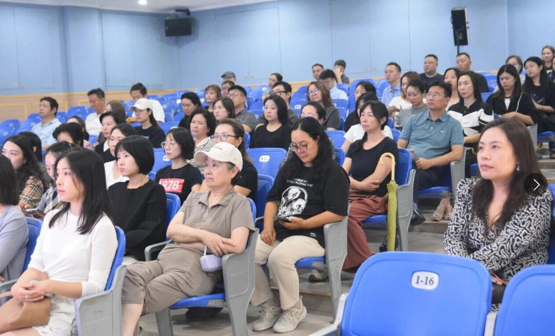 家长到校后汇聚于多功能厅,学部刘校长率先登台致辞。她热情地向家长朋友们介绍了学部的领导团队、心理咨询老师以及各年级班主任,让他们对学校的核心力量有了清晰的认识。随后,刘校长带大家回顾了毕业生取得的卓越成绩,从亮眼的IB与AP成绩到令人骄傲的升学率,每一份成就都彰显着学校的教育实力与学生的无限潜能。