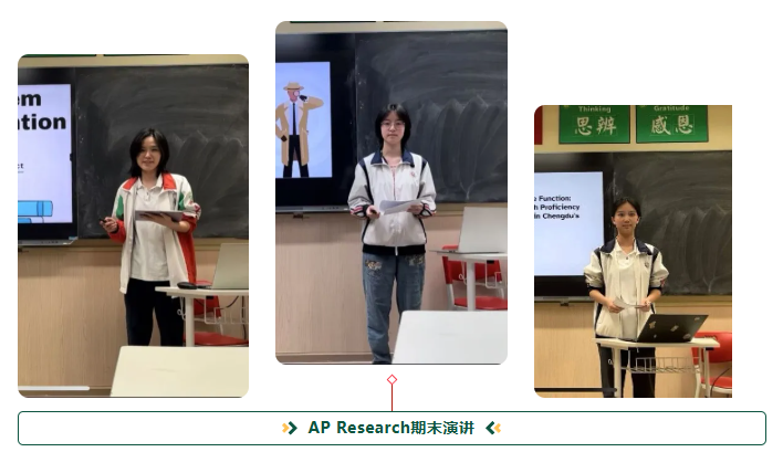 同时,我校AP课程中Capstone教研组,通过拆解研究阶段、设置阶段性小目标,引导学生逐步积累学术表达信心和研究实操能力。在这一过程中,学生不仅在学术层面实现了跨越,英语写作与逻辑表述能力也获得了实质性提升——从最初的撰写困难到最终独立完成一篇结构完整、论证严谨的英文学术论文,语言应用与学术研究能力实现了“双进阶”,从而达成以学科促语言,由学科创语境,托举AP学生学术英语的实际应用能力。